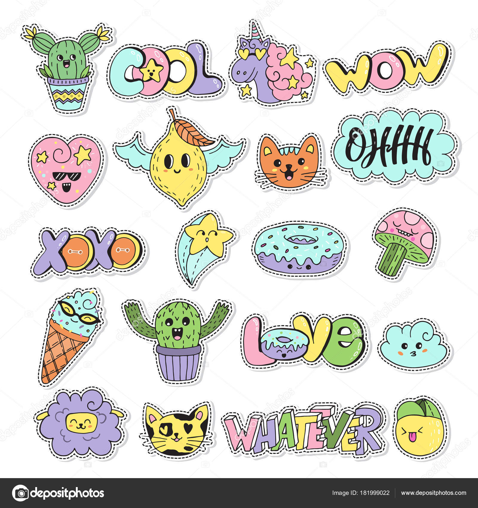 Disegni Cartoni Kawaii Set Patch Vettore Disegno Stile - Download