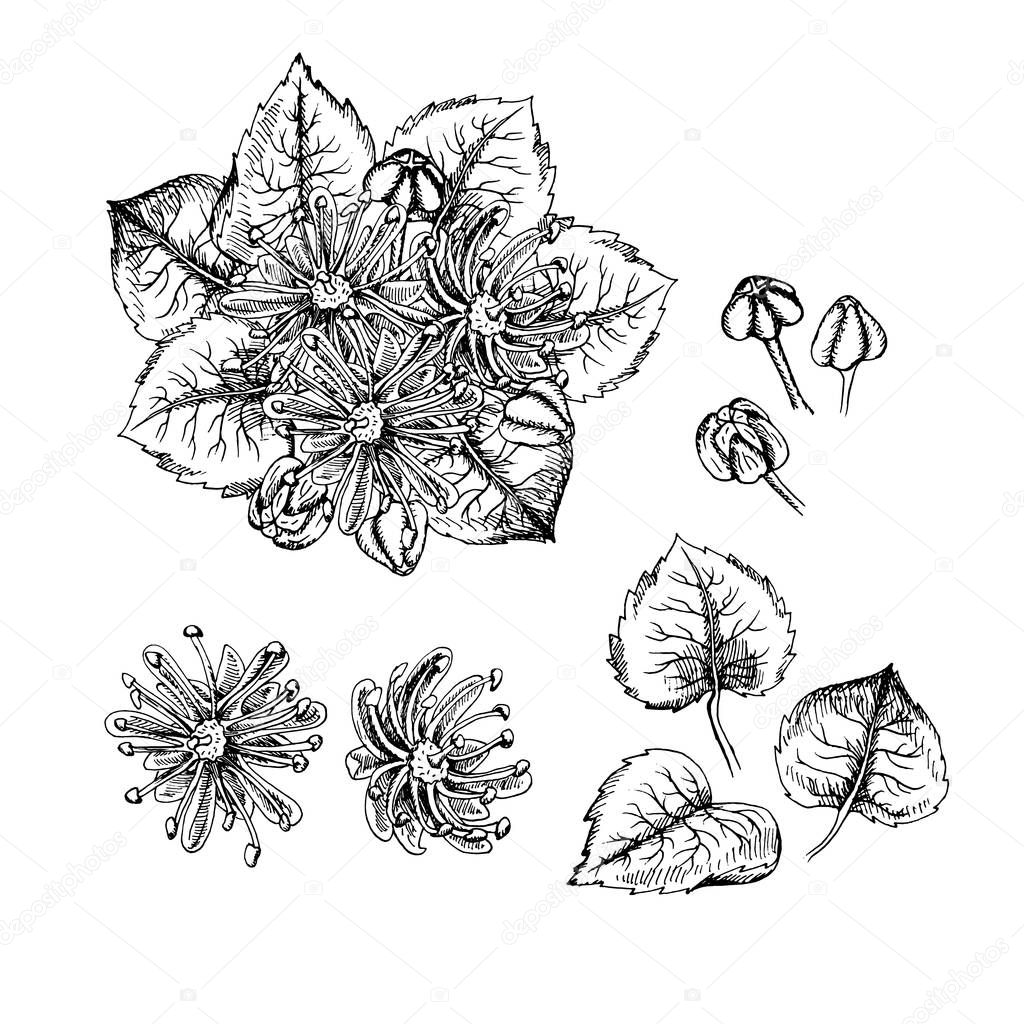 Foglie E Fiori Di Tiglio Disegnato A Mano Vettoriali - Download