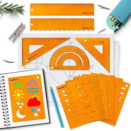Set Di Strumenti Per La Geometria Righello Squadre Goniometro Per Matematica E Strumenti Da Disegno Stencil Bullet Journal 12 Pezzi - Download