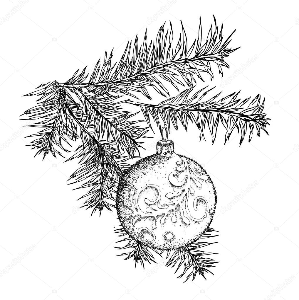 Natale Disegno Di Natale Palline Albero Luci Di Natale Disegno Iperrealistico Da Foto In Bianco E Nero Biglietto Auguri Regalo Di Natale - Download